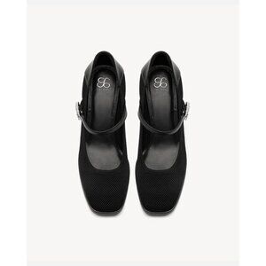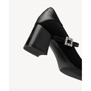 🆕Women'Chunky Mid Block Heel Mary Jane Rhinestone Buckle Strap Work Pumps Black