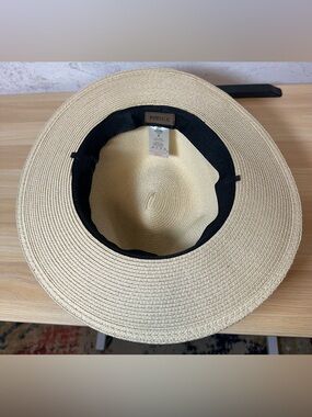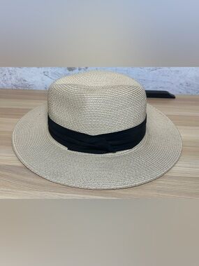 Light tan straw fedora with a contrasting black band. Comfortable, breathable design for all-day wear. Versatile style that complements casual and dress outfits. Lightweight and easy to pack for travel. Beach perfect with sun protection! NWOT