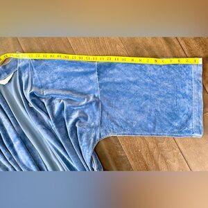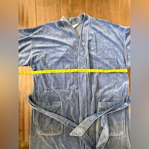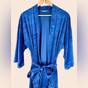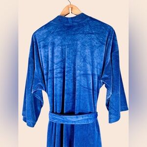 This vintage blue velour robe features a luxurious, plush texture and a classic tie-waist design. While the specific piece in your image appears to be a vintage Christian Dior robe, several modern alternatives share its rich color and material.