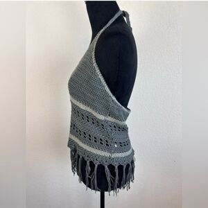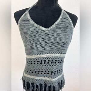 Super Cute Paper Crane Crochet Knit Halter Top Sweater in Gray Size Medium