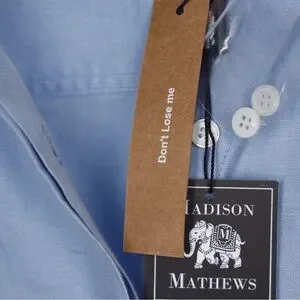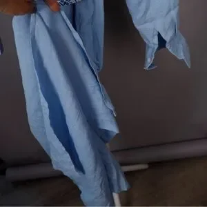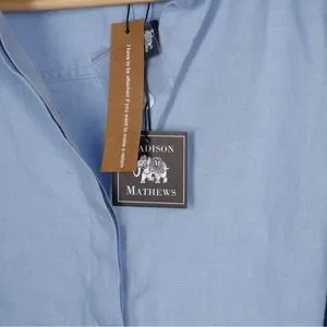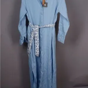 Madison Mathews 100% Linen Light Blue Maxi Shirt Dress with Tie Medium NWT