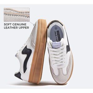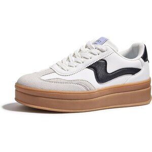 Women Platform WhiteBlack Sneaker Thick Sole Suede Leather Low Top Walking Shoes