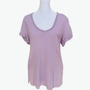 T. La Anthropologie Short Sleeve Lilac Purple Flowy V-Neck Pullover Pocket Tee. Shirt. T-shirt.