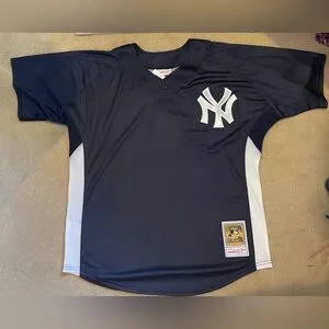 Official-looking baseball jersey in navy with white accents. Features New York Yankees logo on chest for team style. Lightweight, breathable fabric for active play. Clean, classic design ideal for fans and everyday wear.