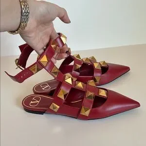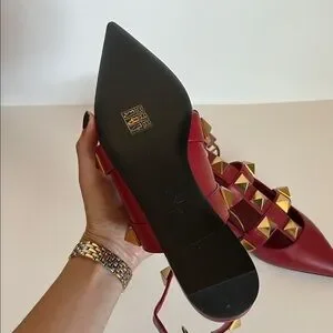 Valentino Garavani Red Pointed Rockstud Triple-Strap Flats