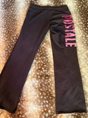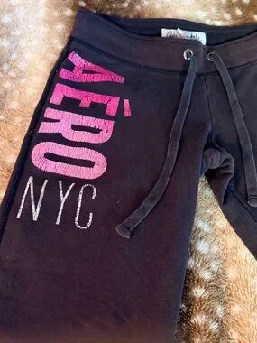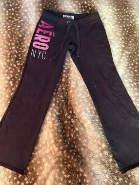 Aeropostale M Brown Low Rise Flare Fleece Sweatpants Pink “AERO NYC” Logo (Worn)