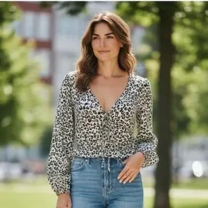 Stylish leopard print top for women. Perfect for any casual or semi-formal occasion. Comfortable and trendy.