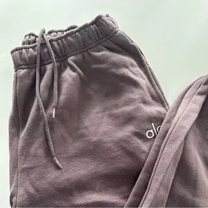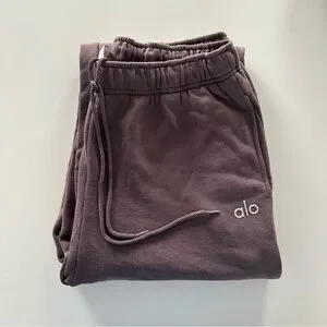 Accolade joggers from ALO Yoga in raisinette. Elastic waistband with adjustable drawstring. Side pockets and logo. Soft, cozy fabric for everyday wear. Worn a few times size large