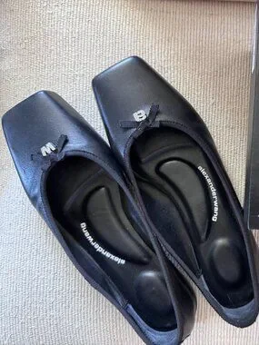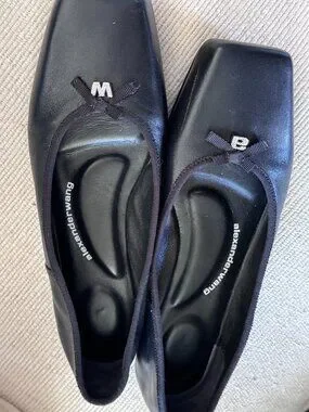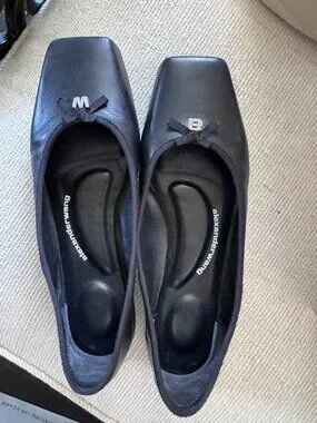 Alexander Wang #30223F004 Billie Flat, size 38, ballet flats, black with rhinestone initials. Runs slightly big (I usually wear 39). Excellent condition. Worn 2 or 3 times. Includes original box and shoe bag.