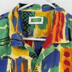 VTG United Colors Of Benetton Shirt Womens 4 Multicolor Geometric Button Up