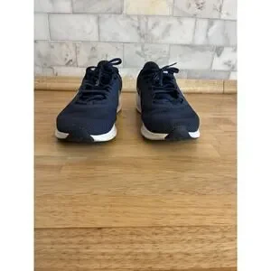Nike Downshifter 11 running shoes provide a lightweight and flexible feel for your daily miles. These sneakers feature a breathable mesh upper in a deep navy blue, supported by midfoot overlays that tighten around your foot for a secure fit. The translucent window allows a glimpse at the support that wraps around your foot when you lace up, while the soft foam cushioning underfoot and in the heel provides comfort and support to keep you going. These are in excellent pre-owned condition with minimal signs of wear. Perfect for morning jogs, gym sessions, or casual weekend outings.
