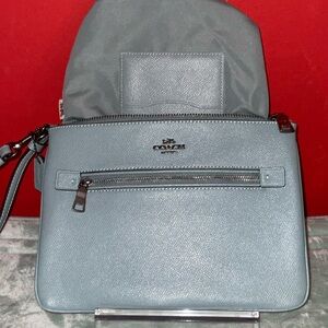 Coach green Leather Crossbody Wristlet with Silver Hardware NWOTS