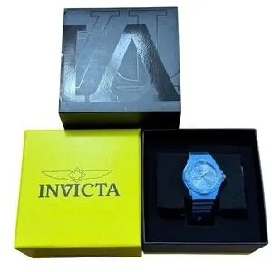 Invicta Elements collection watch presents a vibrant monochromatic aesthetic in a refreshing light blue hue. This timepiece features a durable plastic case with a matching unidirectional rotating bezel and a comfortable translucent silicone strap. The sunray dial is accented with luminous hands and dot hour markers for easy visibility, while the reliable quartz movement ensures precise timekeeping. Perfect for casual wear or aquatic activities, this sporty accessory comes complete with its original presentation box and tags.
