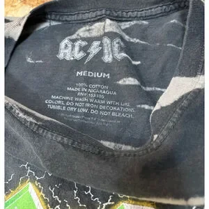 Rock out in this AC/DC “Who Made Who” Tour ’86 graphic tee, featuring a bold front print with lightning, columns, and Angus Young design. Unique bleach-splatter pattern gives it a one-of-a-kind vintage look.