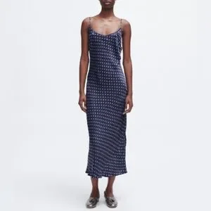 Rachel Comey Wren Satin Polka Dot Navy Blue Slip MIdi Spring Dress Size 8