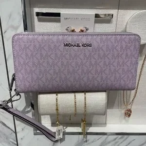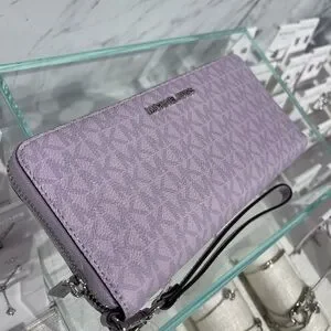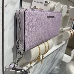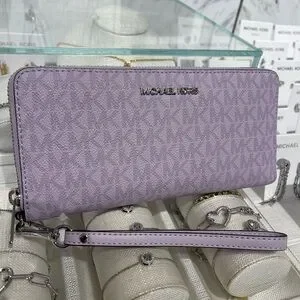 MICHAEL KORS Jet Set Lg Signature Logo Continental Wallet Wristlet Lt Quartz