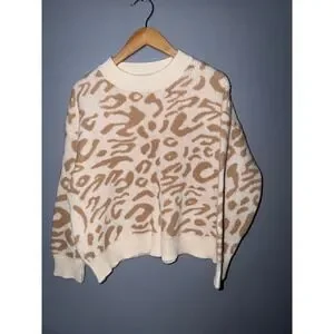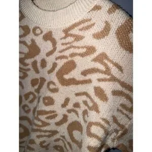 SHEIN Leopard Print Crewneck Sweater Cream Tan Size S Casual Cozy
