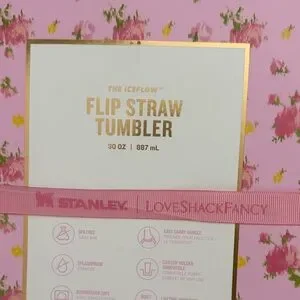 Stanley Pink Floral Insulated Tote and matching 30oz flip straw tumbler
