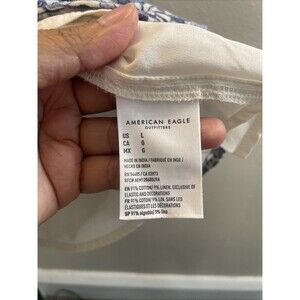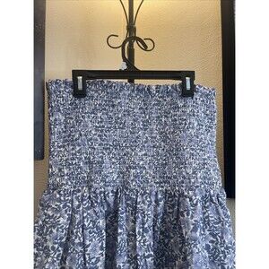 American Eagle Strapless Floral Mini Dress Cotton Linen Blend Womens Large Blue