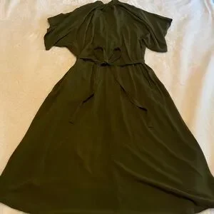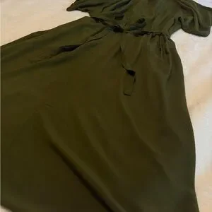 MAWLANA Wrap Style Long Dress Dark Olive Green
