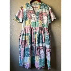 Simply Southern Womens Large Patchwork Floral Midi Dress Preppy Modest Pockets