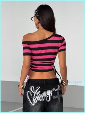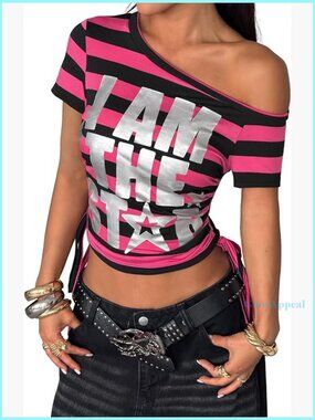 Brand new, never worn, and in flawless condition — this Y2K off the shoulder top delivers a punk, retro aesthetic perfect for casual wear, concerts, garden parties, or trendy streetwear. The fit is ruched and flattering, and the fabric is incredibly lightweight and comfortable.