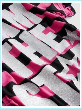 Details: Striped pattern with star and letter print, drawstring ruched sides