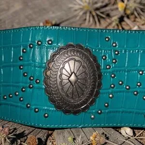 Lucky & Blessed Turquoise Western Belt Leather Studded Concho Size Small Cowgirl