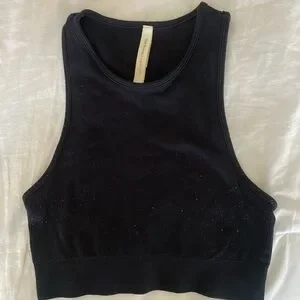 Ribbed high-neck crop tank from Babaton. Soft stretch knit with a fitted silhouette. Clean racerback-style shoulders. Easy layering piece or standalone top.