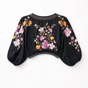 Beautiful!! FARM RIO Black Floral Cropped Batwing Sleeve Blouse 100% Viscose