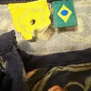 This is a beautiful cropped blouse. It still has gorgeous colors that really pop off the black background. It is slightly faded from when I first bought it. It is a size P or Small. No rips or stains. The measurements are hard to take since the chest goes right into the arms which measure 37". It is 13" high. The elastic waist is 12".