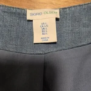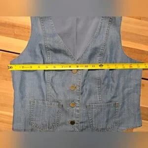 Stylish blue denim vest by Sigrid Olsen. Features button front and pocket details. Ideal for layering.