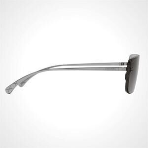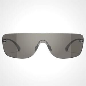 New CHANEL Sunglasses Ruthenium Metal Rimless Shield Mask Brown Lens CC Logo