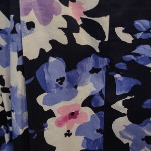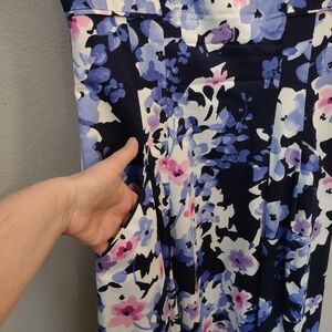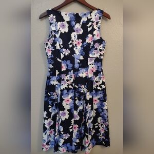 Lauren Ralph Lauren, floral dress, watercolor print, fit and flare, summer dress, garden party, wedding guest, pockets, navy blue, pink flowers, sleeveless, cotton blend, size 6, preppy, classic style, feminine, cocktail dress, brunch outfit