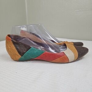 Lucky Brand Petra Patchwork Flats Sz 10 Tan Aqua Coral Brown Leather Pointed Toe