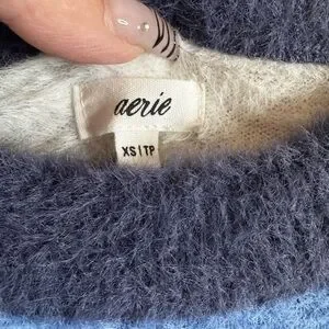 #308-AERIE Plush Colorblock Crewneck Sweater Blue/Yellow/White/Lgt.Blue XS