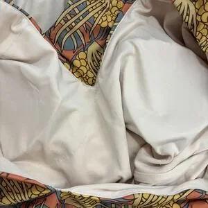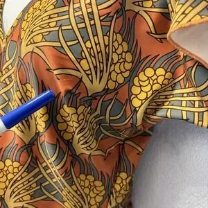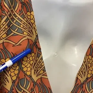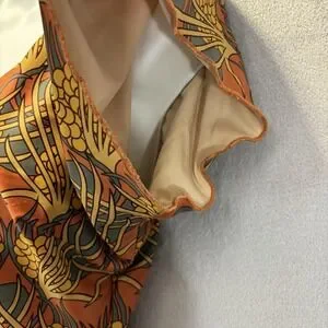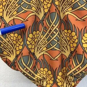 Color and pattern: Brown and Orange, floral print.
