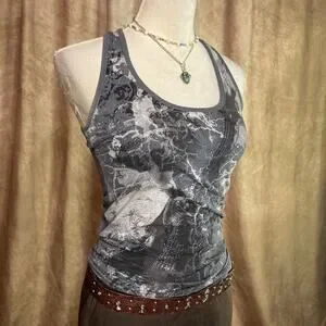 Vintage Y2K Tank Top Rhinestone Guitar Cut Out Back Sleeveless Indie Sleaze Punk