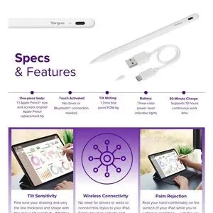 Targus stylus pen for touch devices. Tilt writing and touch activated. Includes USB charging cable.