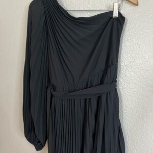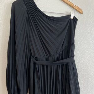 NWOT Divine Charm Black Pleated One-Shoulder Maxi Dress