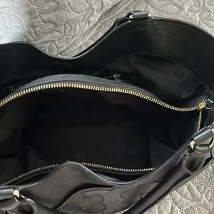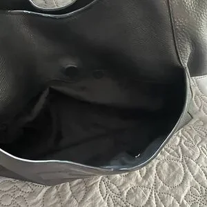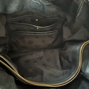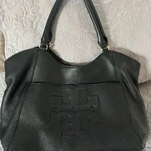 Tory Burch Black Pebbled Leather Double-T Shoulder Tote