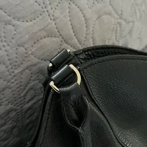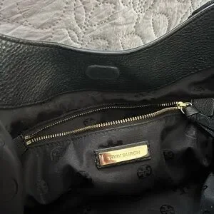 Classic Tory Burch shoulder tote in pebbled leather. Raised double-T logo on the front. Dual shoulder straps with gold-tone hardware. Clean, structured silhouette for everyday wear.