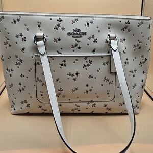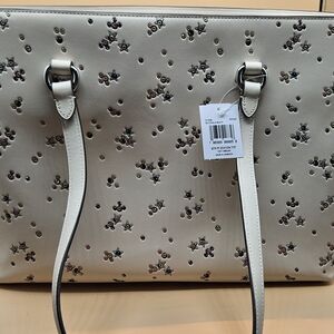 Coach StationWhite Leather Tote with Floral and Stud Accents, NWT