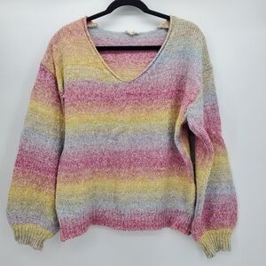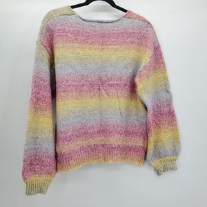 ee:some rainbow pastel ombre v-neck balloon sleeve sweater women's size m/l