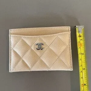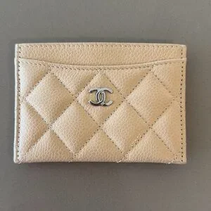 Brand new with tags Chanel beige caviar leather cardholder in pristine, unused condition. This piece features Chanel’s iconic quilted caviar leather, known for its durability and beautiful textured finish, along with the classic CC logo for a timeless, elegant look.
