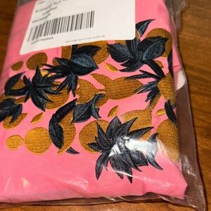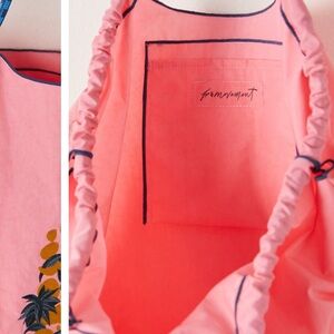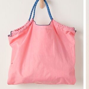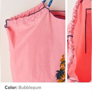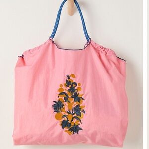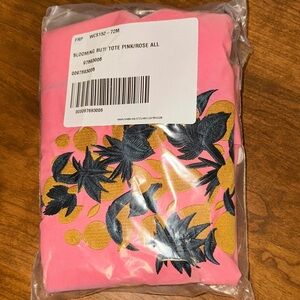 Free People Movement Blooming Buti Pink Tote with Gold & Navy Embroidery NWT