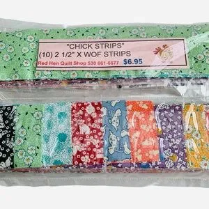 Cute bundle of 10 coordinating fabric strips (per pack) from Red Hen Quilt Shop.