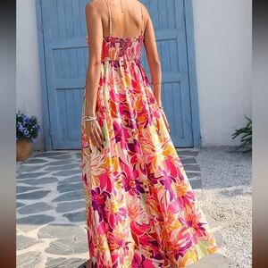 Embrace vibrant style with this stunning floral maxi dress. Featuring a lively pink and orange pattern, it's perfect for any occasion. Enjoy comfort and elegance in one beautiful piece.