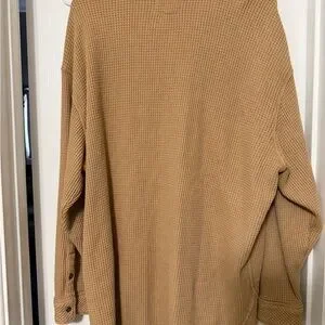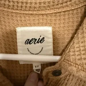 aerie Camel Waffle-Knit Button Shirt Jacket