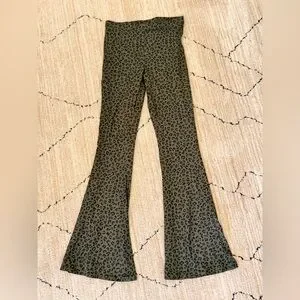 Bear Dance Cheetah Print Olive Green Black Bell Bottom Leggings Womens